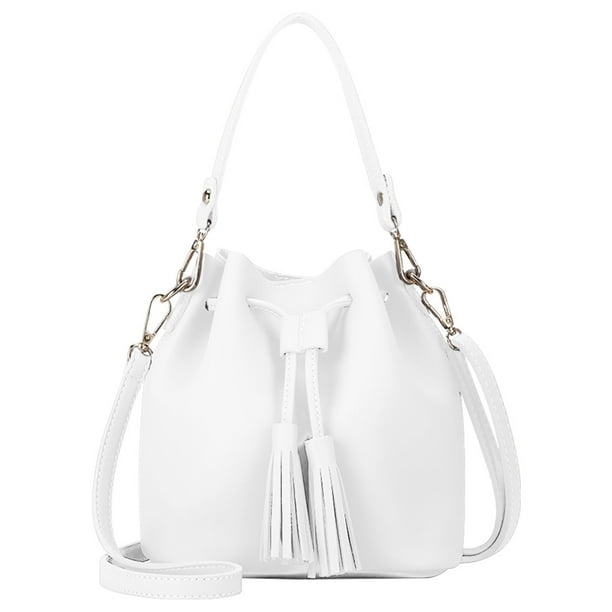 1111fourone Bucket Bag Faux Leather Tassel Drawstring Crossbody Pouch Women Solid Color Shoulder Bag Handbag Walmart Com